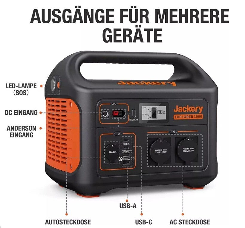 Im folgenden finden Sie alle wichtigen Daten über die Jackery Explorer 1000 Powerstation: