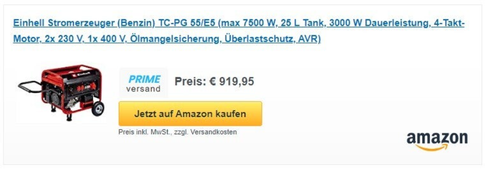 Mit einem einfachen Benzingenerator mit mehr als 2 KW Leistung kann man auch mehrere Kleingeräte gleichzeitig betreiben. Diese Geräte sind natürlich teurer, haben ein höheres Gewicht und benötigen zur Aufbewahrung auch deutlich mehr Stauraum.